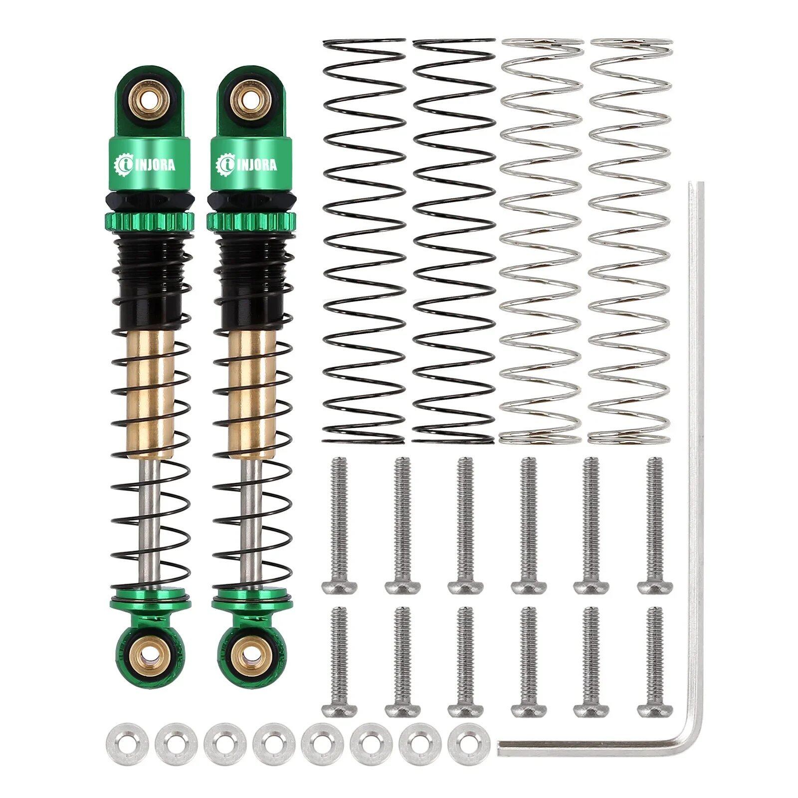 [2個 グリーン] INJORA 43MM ショックアブソーバー アルミニウム スレッド テレ ダンパー アップグレード 1/24 RC カー アキシャル SCX24 C10 JLU グラディエーター マイクロ クローラー