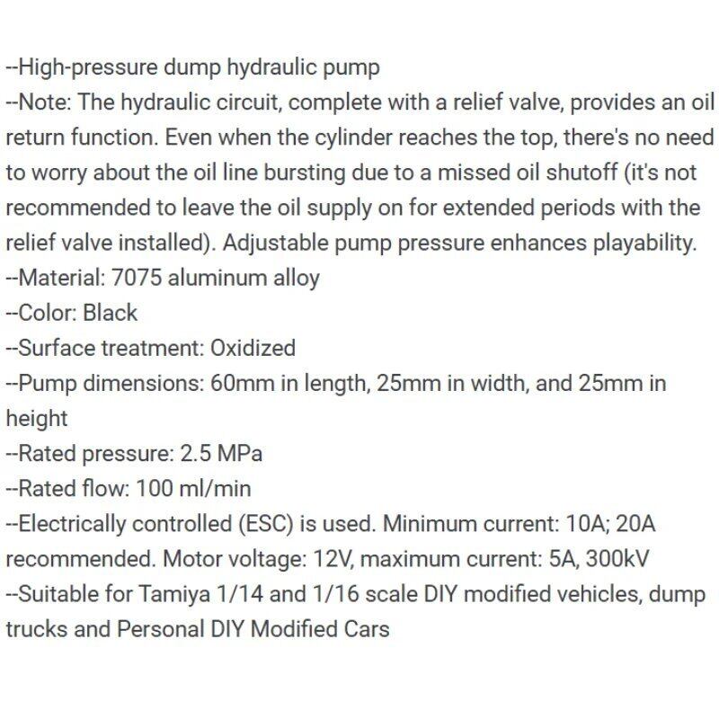 タミヤ 1:14 RC トラック トラクター スカニア MAN ベンツ ボルボ 1:16 トラック トラクター用油圧ポンプ 高圧オイルポンプ DIY パーツ
