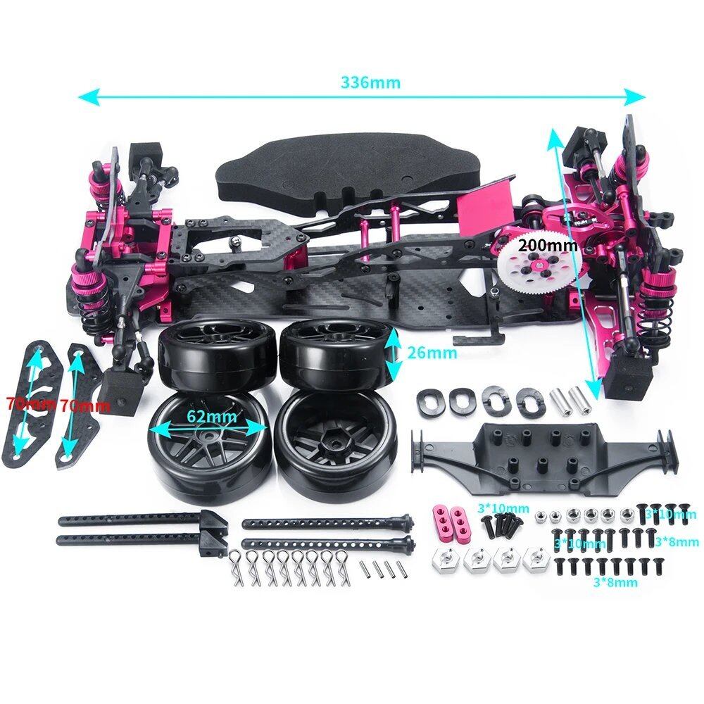 ドリフト初心者に最適な後輪駆動1:10ドリフトキットです。キットの重量は後方に集中しており、超広角ステアリングシステムがすでに付属しているため、初心者でも簡単に操作でき、ドリフト体験を楽しむことができます。