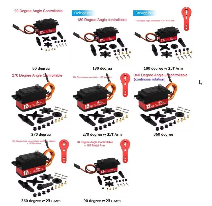12KG TD-9512MG セミ メタル デジタル サーボ 4.8v 7.4v ステアリングギア 90/180/270/360 度角度制御可能 RCカー 1:8 1:10 ドリフトカー用