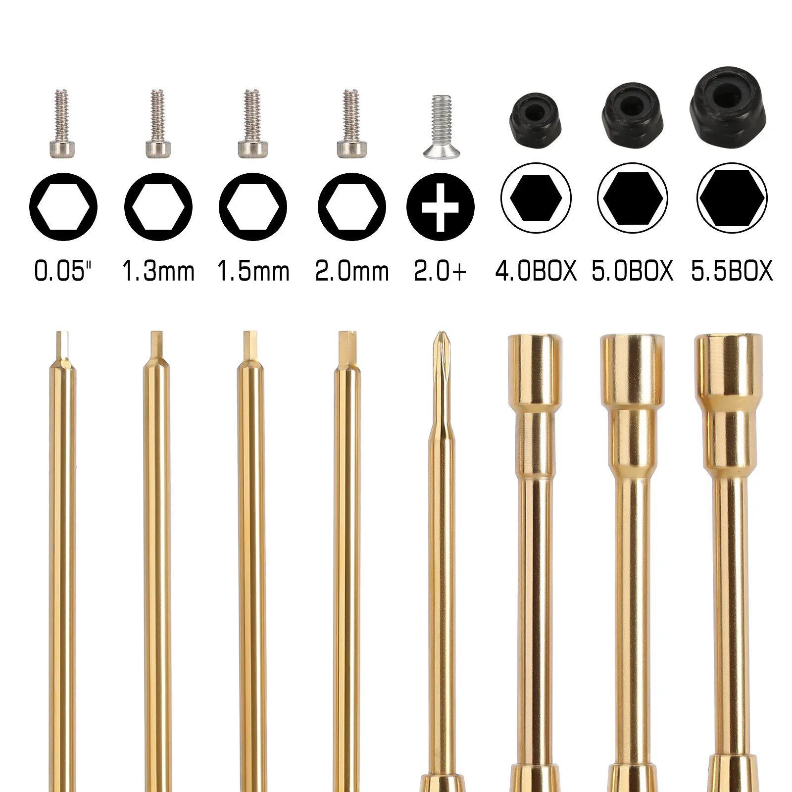 六角ドライバーチップサイズ: 1.27mm (0.05") 1.3mm 1.5mm 2.0mm