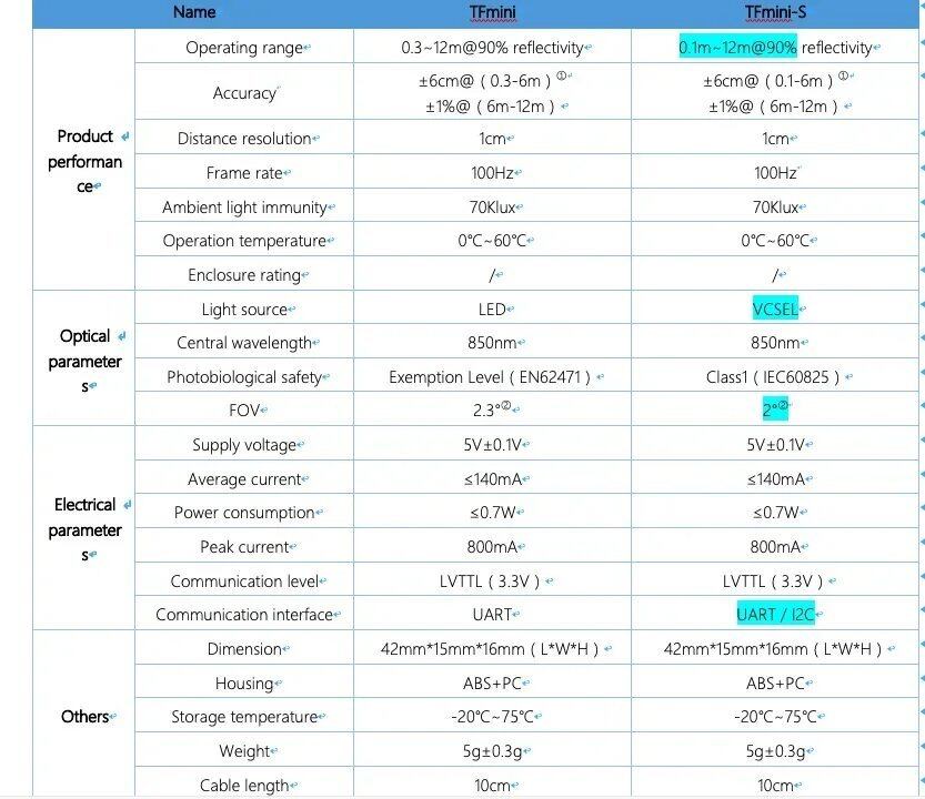 TFminiと比較して、TFmini-Sには以下の利点があります。