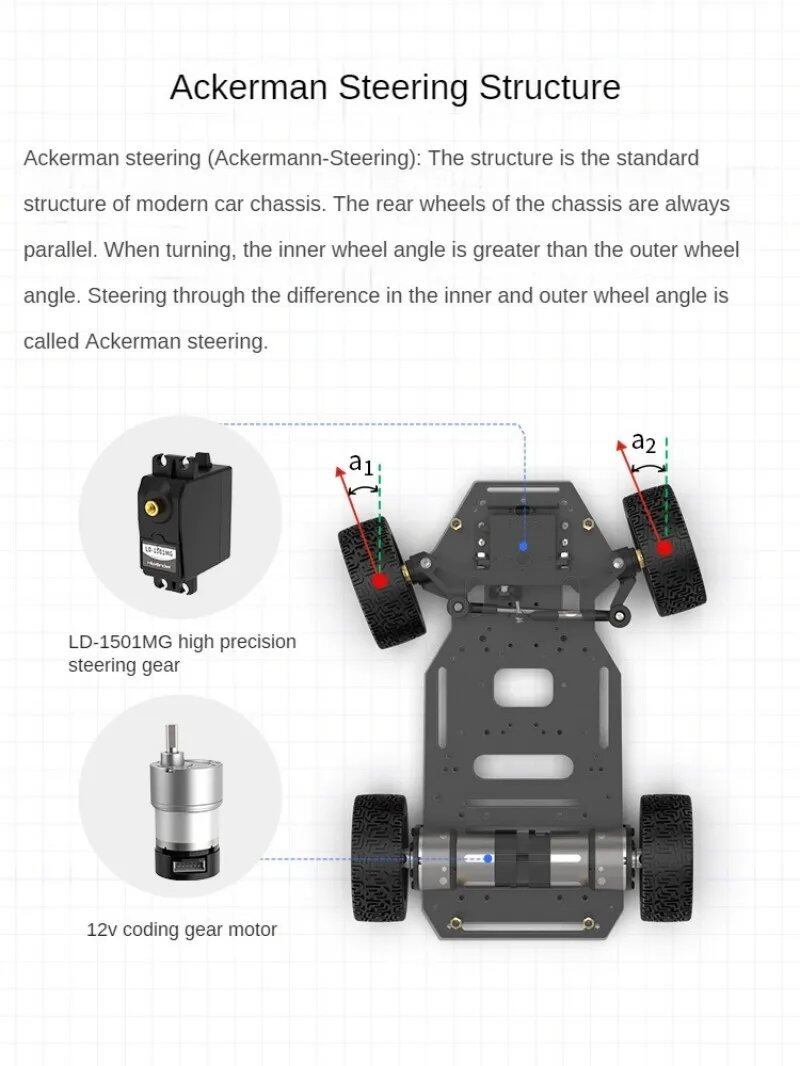 アッカーマンステアリングシャーシ:アッカーマンステアリングシャーシは、複雑な操作に最適な正確で機敏な旋回を保証します。