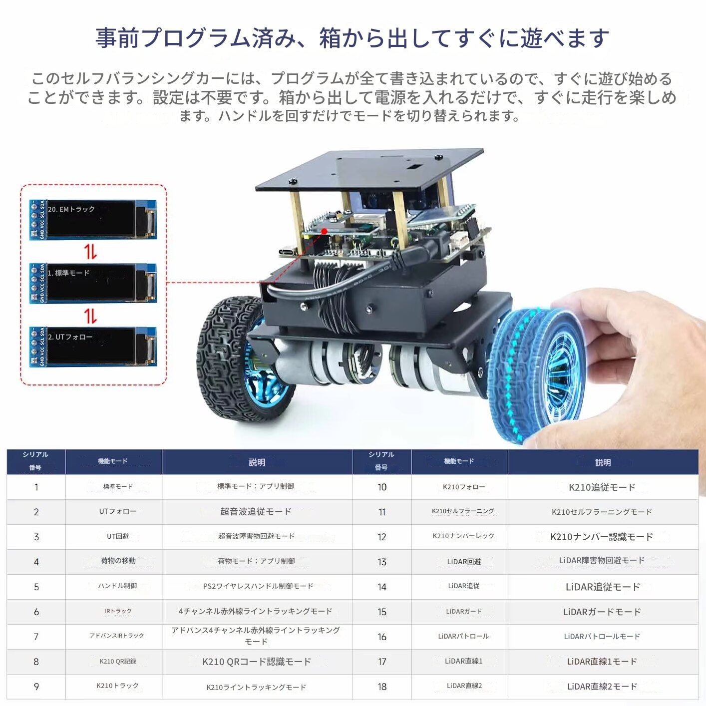 正確なセンサーシステム:6軸姿勢センサーを搭載したこのセルフバランスロボットカーは、正確なPID制御のためのリアルタイムの動作状態データを提供します。