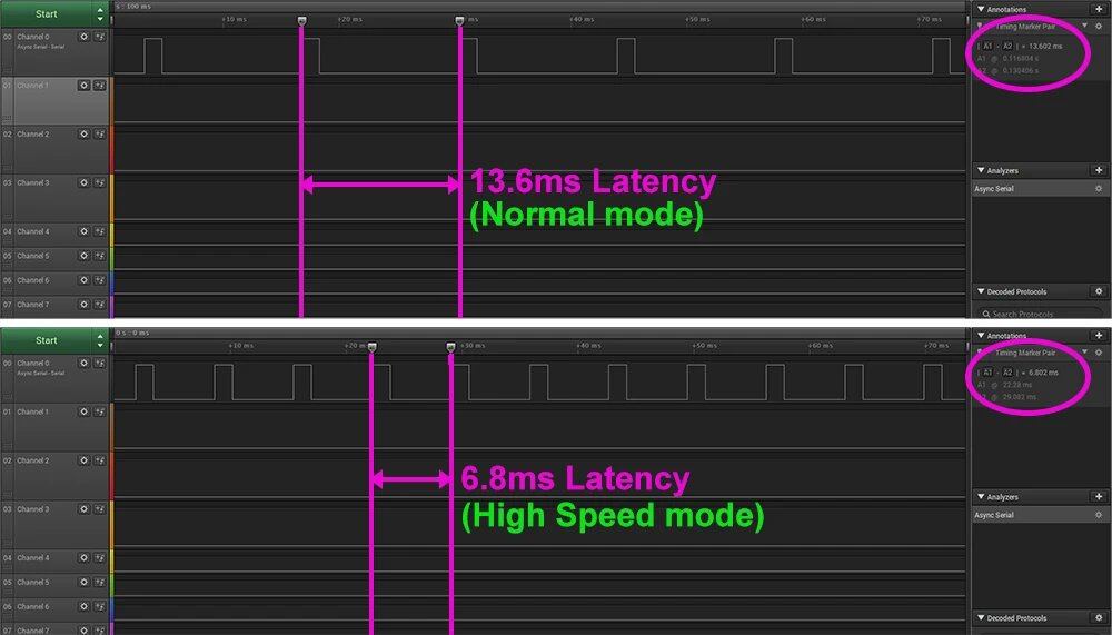 「通常モード」と「高速モード」信号の比較: