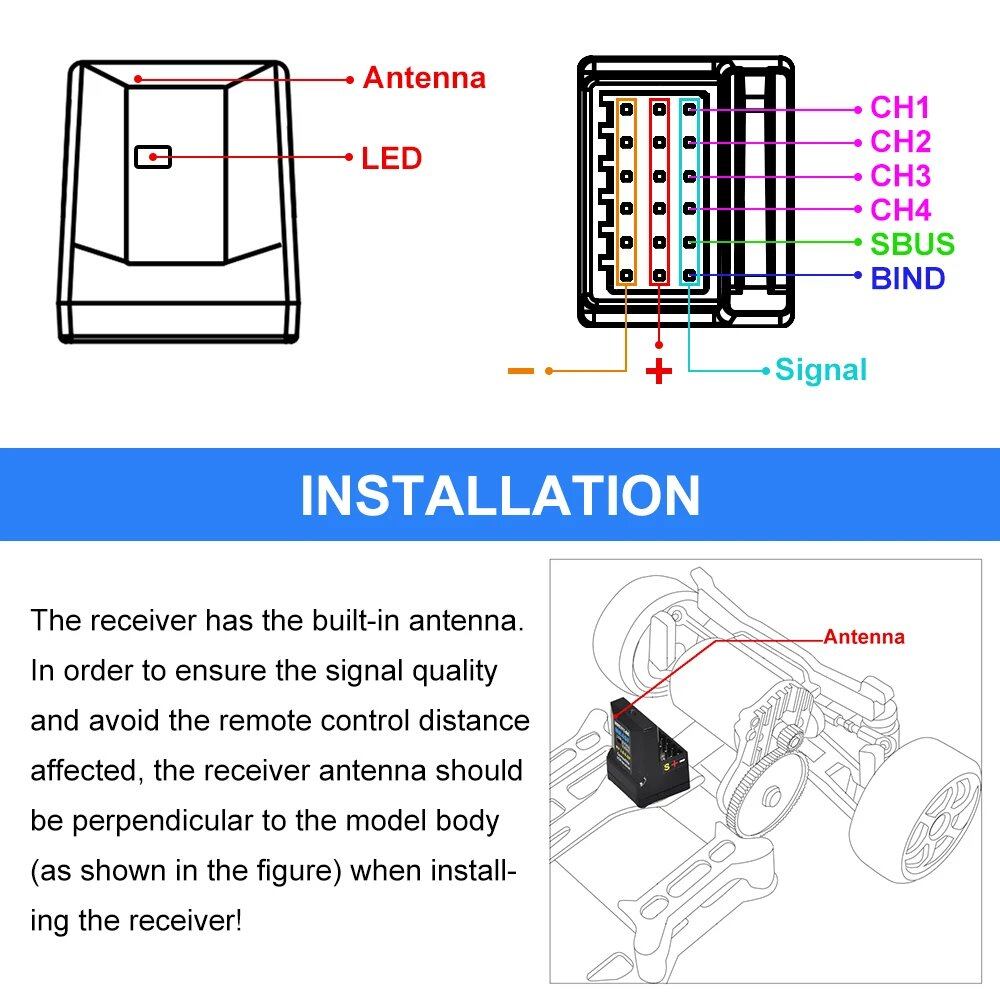 軽量でコンパクトな設計:わずか7.2gのこの受信機は軽量でコンパクトなため、車両の重量を最小限に抑え、操縦性を最大限に高めます。