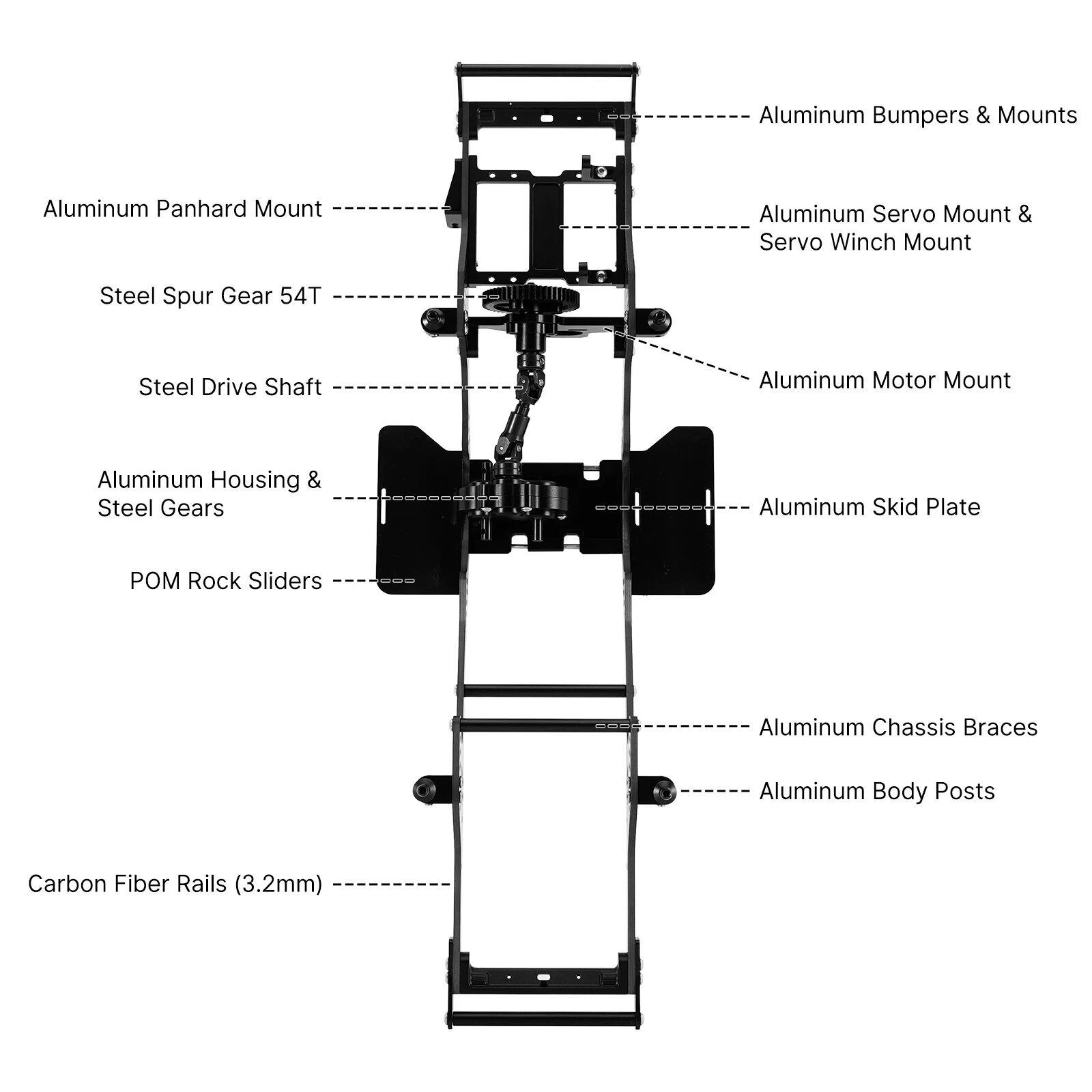 LCGシャーシキット:INJORA製 フロントマウントトランスミッション搭載 LCGカーボンファイバーシャーシキット(1/10スケールRCクローラー用)(INC-10F) S25d9357030095