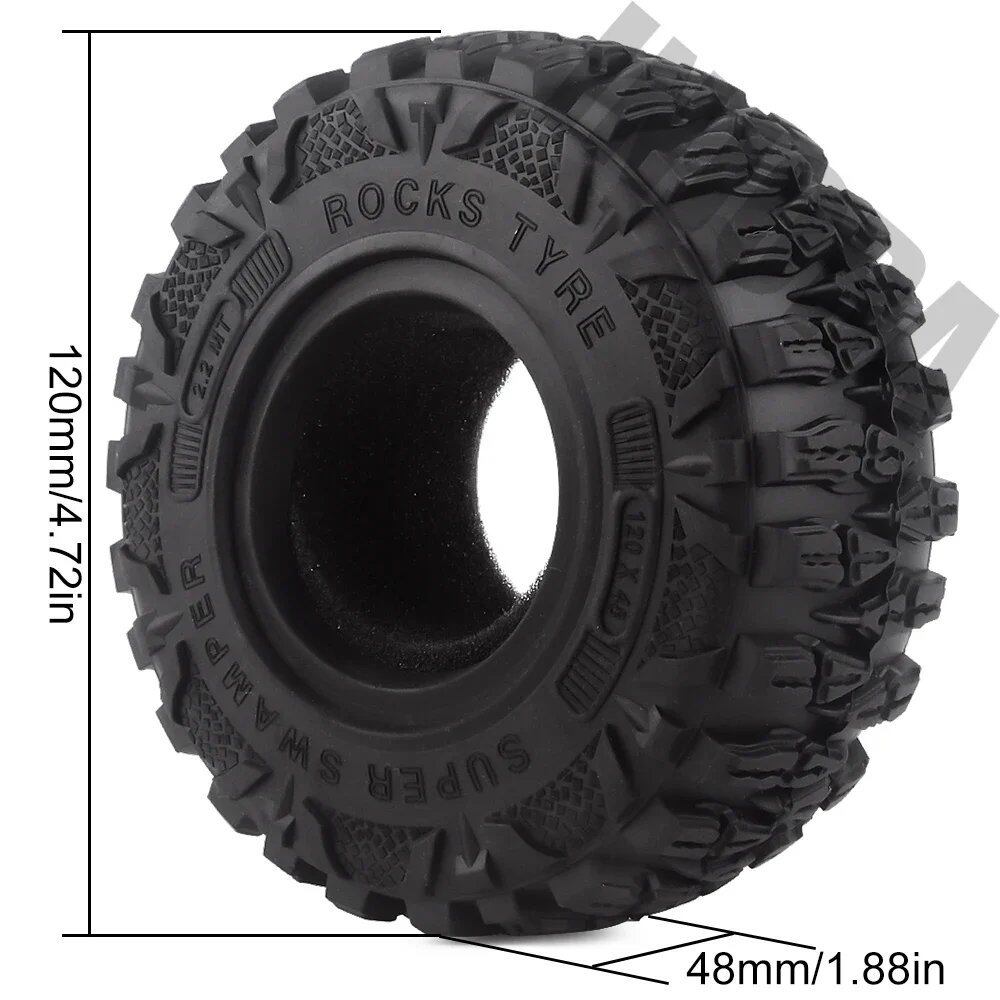 4PCS-AX6021: INJORA 4個 2.2インチ マッドグラップラー ラバータイヤ 2.2インチ ホイールタイヤ 120*48MM 1:10 RC ロッククローラー TRX4 TRX-6 Axial SCX10 90046用 S2533054642979