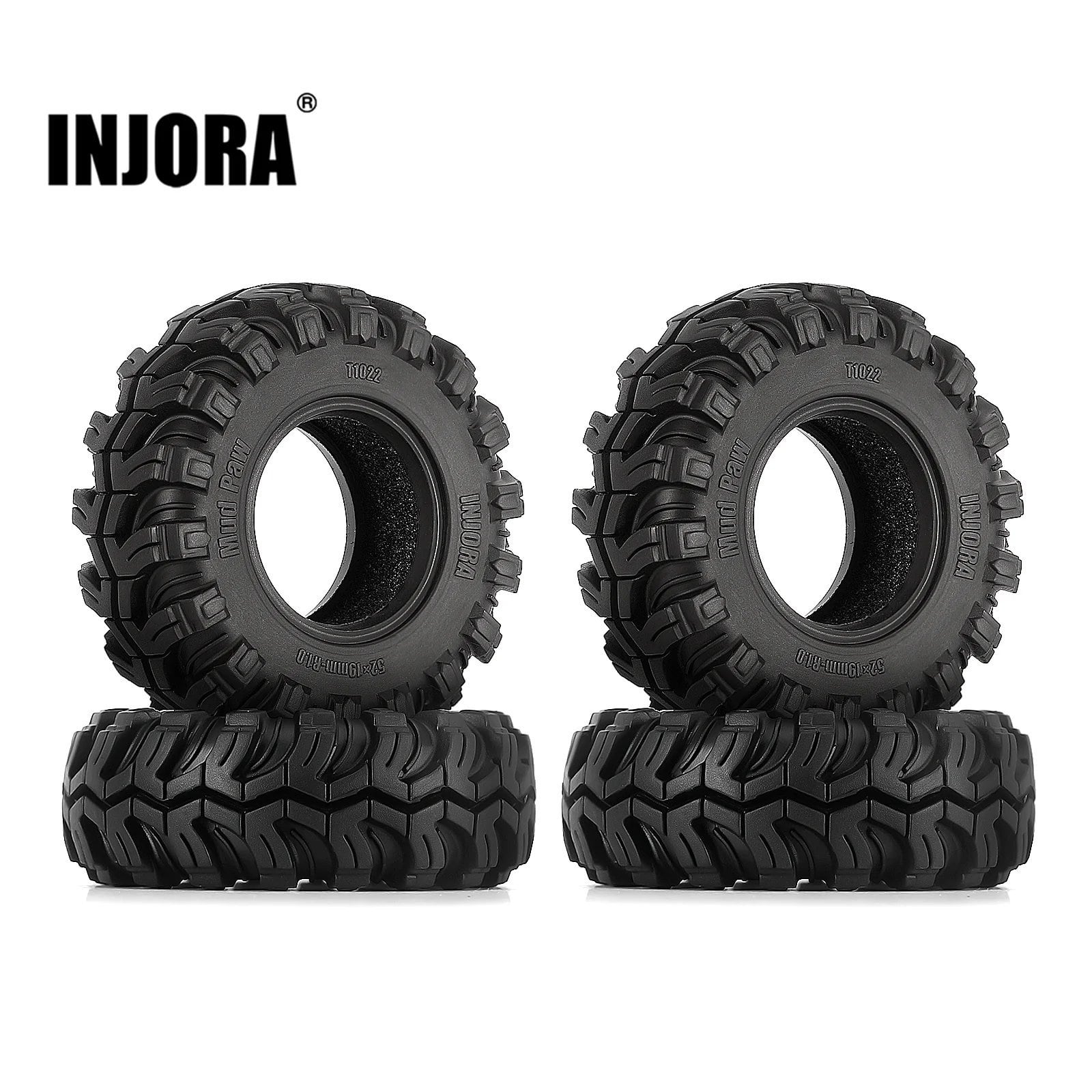4個 -T1022: INJORA Mud Paw 1.0インチ タイヤ 1/24 RC クローラー アキシャル SCX24 FMS FCX24 Enduro24 (T1022) S22d6861394353