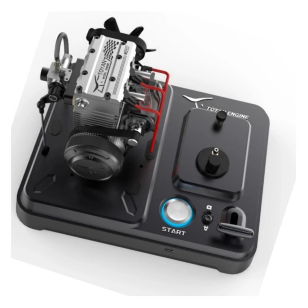 DIY TOYAN FS-L200AC 4 ストローク メタノール エンジンには、スターター キットとワンボタン スタートの金属ベースとバッテリーが付属しています。