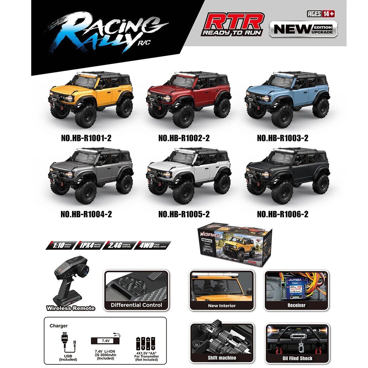 ■RC クローラー 1/10 4WD RTR HB R1001 LED カー 2.4 グラム電動リモコン付きロックバギーオフロード車両 Rc カー